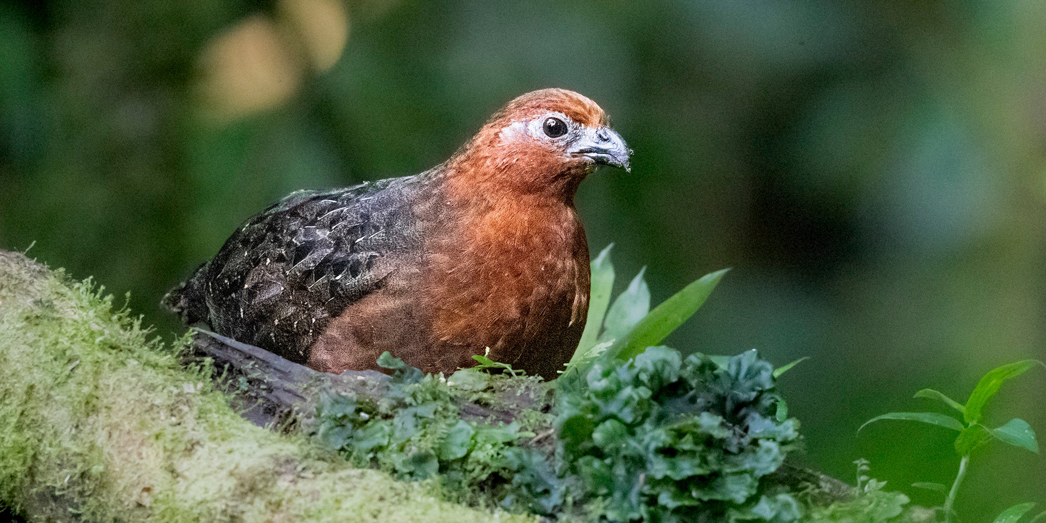 Hábitat: Bosques densos y húmedos con sotobosque espeso y vegetación densa en las tierras bajas y estribaciones.