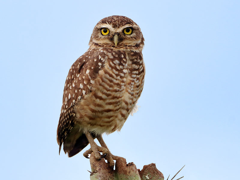 Variety of Sizes: The size of typical owls varies significantly among species. Some are relatively small, like the Elf Owl which is around 5 inches in length, while others are much larger, such as the Eurasian Eagle Owl which can have a wingspan of over 6 feet.